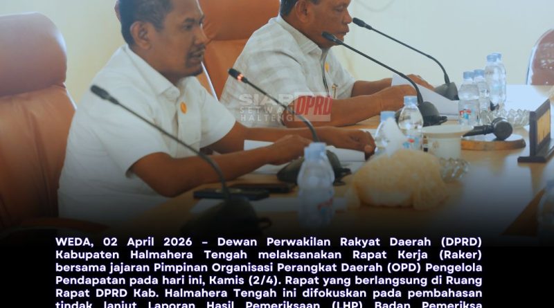 WEDA, 02 April 2026 – Dewan Perwakilan Rakyat Daerah (DPRD) Kabupaten Halmahera Tengah melaksanakan Rapat Kerja (Raker) bersama jajaran Pimpinan