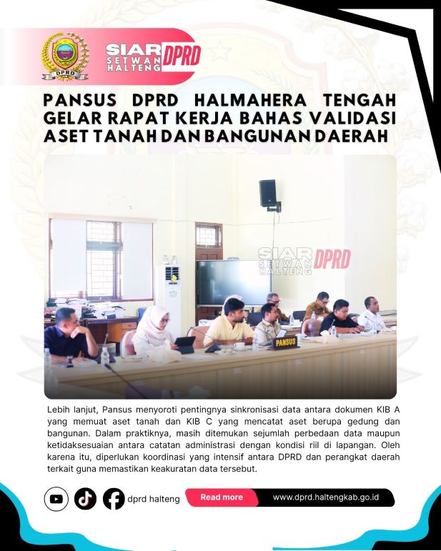 Melalui pelaksanaan rapat kerja ini, DPRD Kabupaten Halmahera Tengah, khususnya Pansus Tanah dan Bangunan, menegaskan perannya dalam fungsi pengawasan terhadap pengelolaan aset daerah. Diharapkan, hasil dari pembahasan ini dapat memberikan kontribusi nyata dalam meningkatkan kualitas tata kelola pemerintahan daerah, serta mendukung pembangunan yang berkelanjutan di Kabupaten Halmahera Tengah.